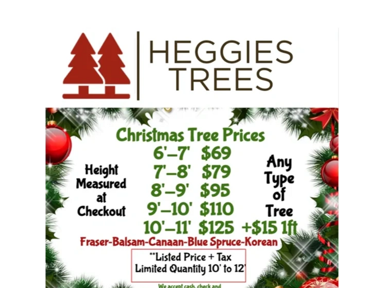 We are excited to be open for business for our fourth season! Our business is growing and so is our little family! Last year was a great success! We are so excited to see returning customers from last year and to meet new families that chose to have their Christmas tree experience with us! I enjoyed talking to all of the people that came through our farm. I would say that is something that makes Heggies Trees special. The time that I can give to greet each customer and to be present for answering any questions they may have. We look forward to seeing all of you and thank everyone that chose to have their Christmas Tree experience with us!